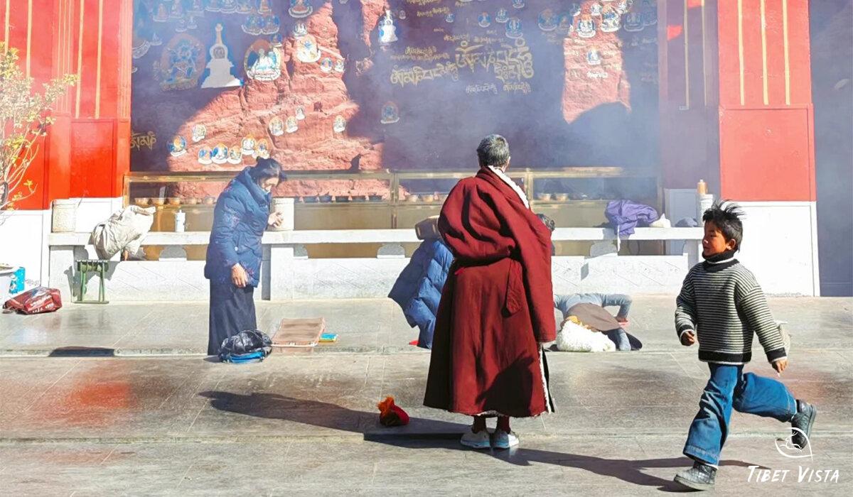 Jokhang Temple, the holiest Buddhist site for Tibetans, is a must-visit. Inside, a life-size statue of Sakyamuni awaits, priceless Buddhist artifacts. From the temple's rooftop, we enjoyed panoramic views of old Lhasa city and the bustling Barkhor Bazaar below. This profound spiritual experience offers tourists a deep connection to Tibetan culture.